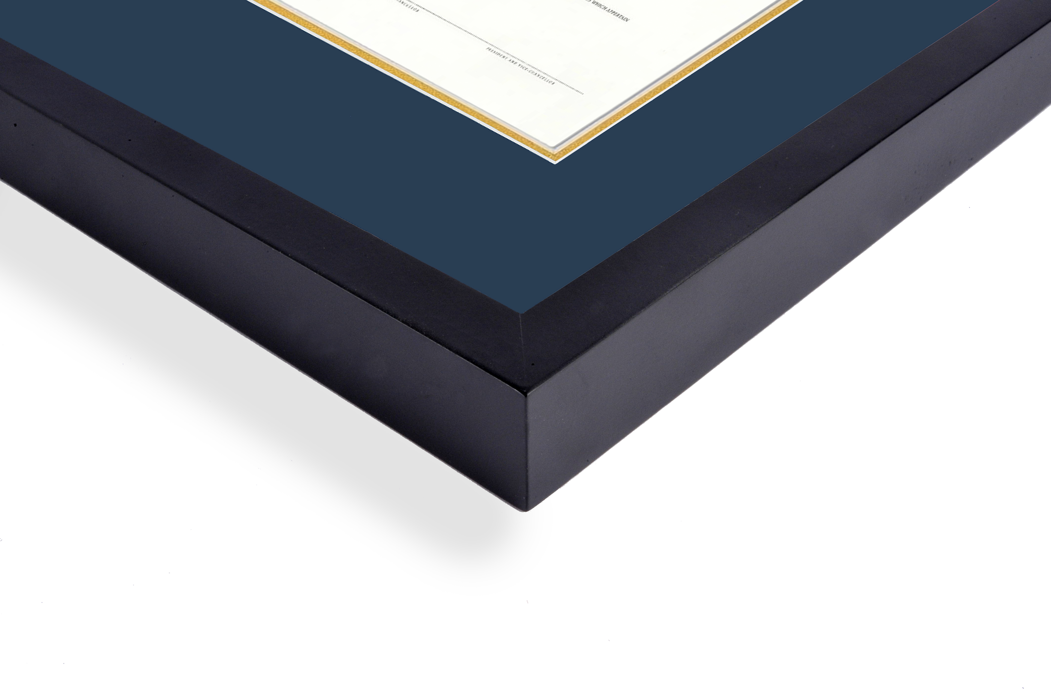 16 x20 frame with a BLUE Matte and GOLD Inner Matte Trim