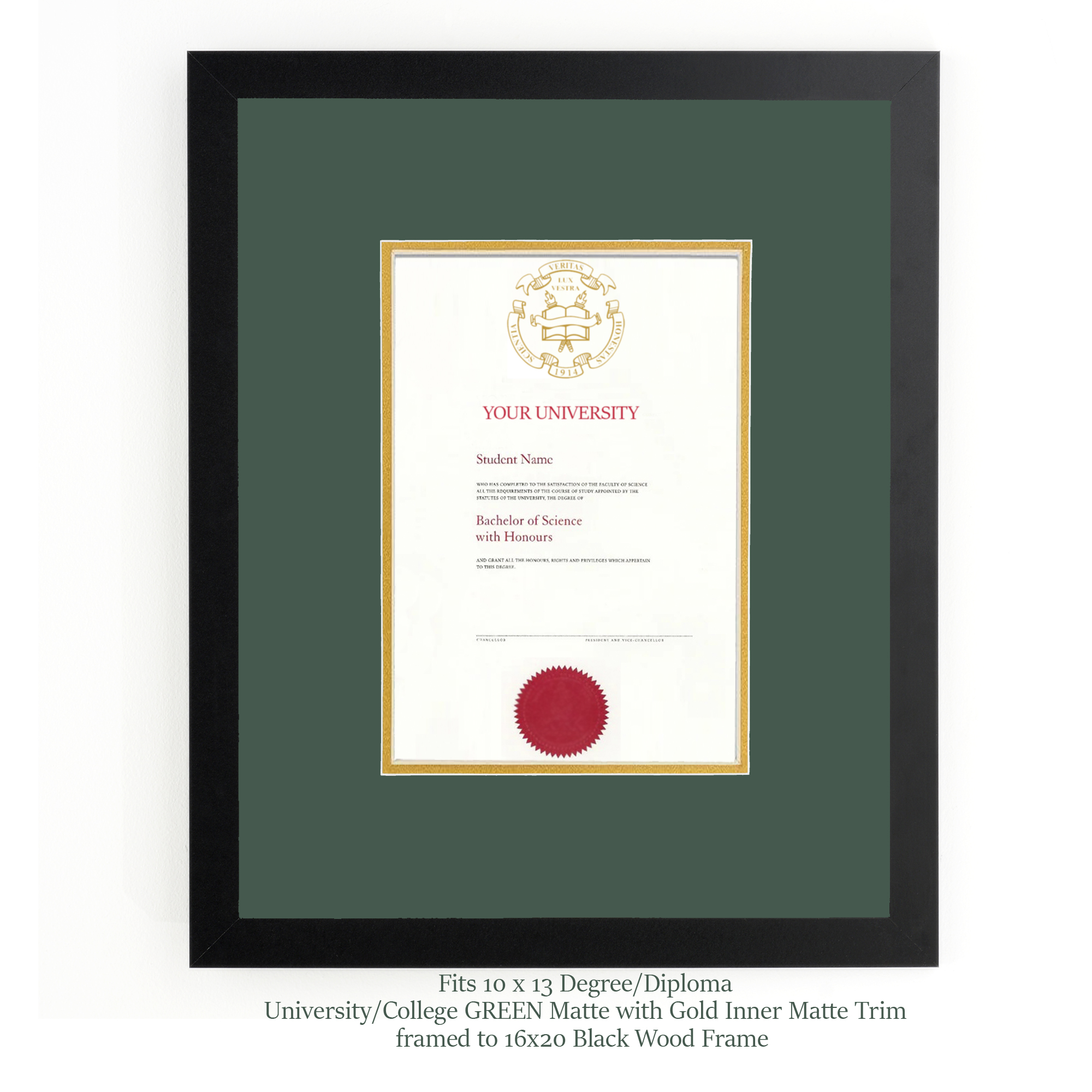 16 x20 frame with a GREEN Matte and GOLD Inner Matte Trim