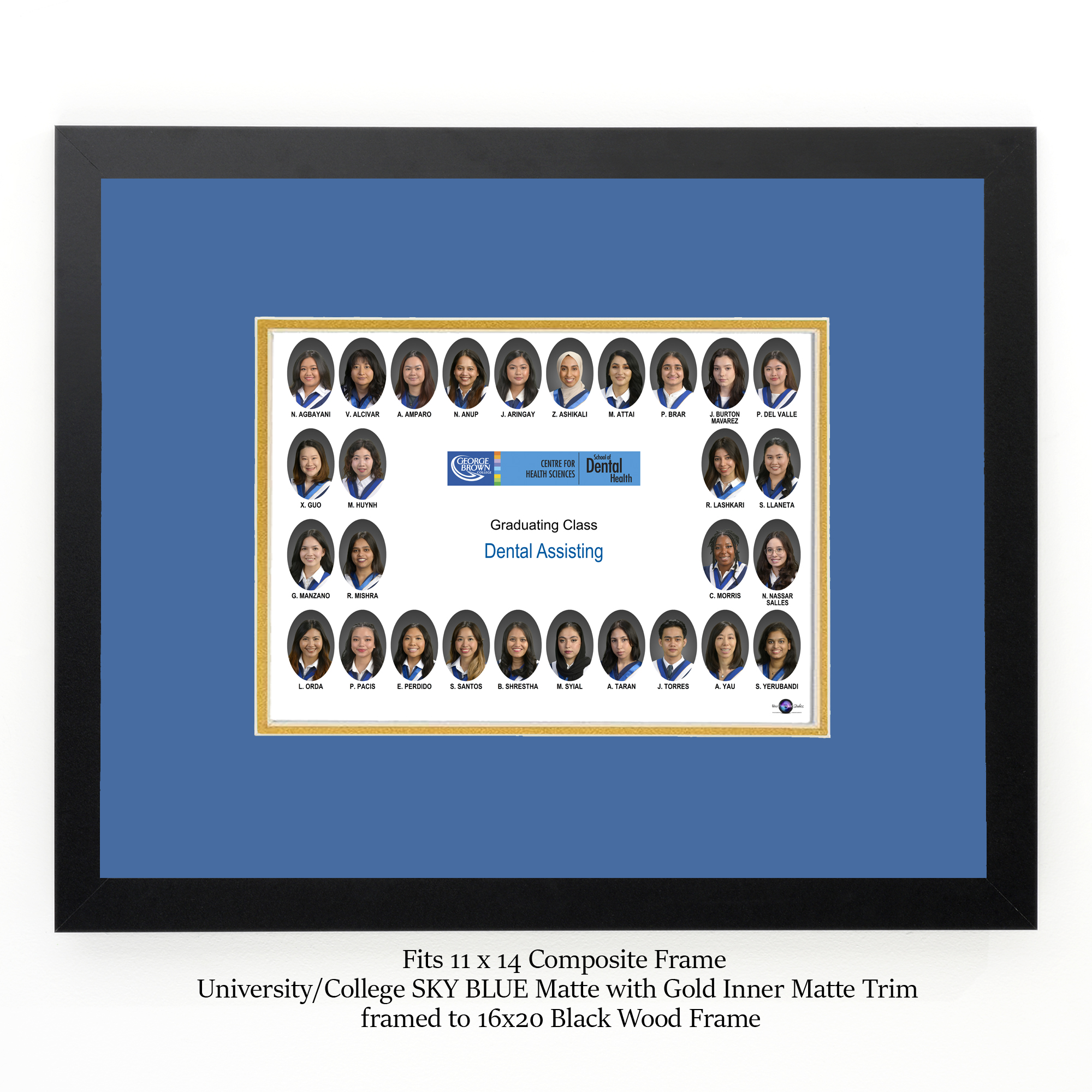 For a horizontal class composites that have an 11x14  print. Suitable for GEORGE BROWN COLLEGE, ROBBINS HEBREW, etc. Or any other school with the same SKY BLUE color.
